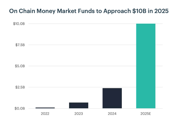 Ranging from the On-chain Money Market Fund growth forecast visualized at the start of this piece, to an expectation that AI Agents will account for over 10% of all on-chain activity by end-2025, the report is a thorough survey of digital asset opportunities all institutions ought to be aware of.