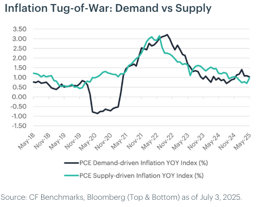 Portfolio Perspective: Our outlook remains nuanced. While disinflation is still progressing, tariffs have reintroduced upside risks. Investors should be prepared for volatility in rate expectations and inflation-sensitive assets. Real assets, quality equities with pricing power, and alternative stores of value such as Bitcoin and gold may benefit in scenarios where Fed policy turns more reactive. With political pressures rising and the Fed’s path to normalization still unclear, portfolio flexibility remains key.