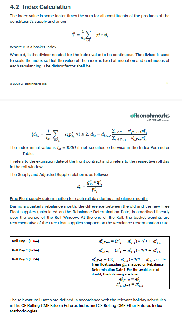 The proposed methodology changes mean that product providers that replicate or utilize the CF Rolling CME Bitcoin Ether Basket Futures Index may need to factor these changes into their processes and products when transacting in instruments that are linked to these indices. The financial value of contracts, instruments and funds that directly reference or are settled using these indices may be impacted by the proposed changes.