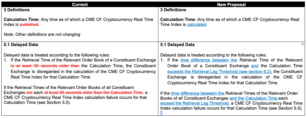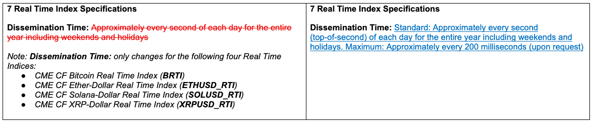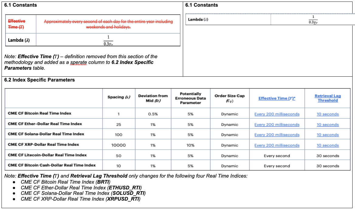 The Administrator proposes to implement the changes to the CME CF Real Time Index Methodology at approximately 10:00 London time on May 18th, 2026.