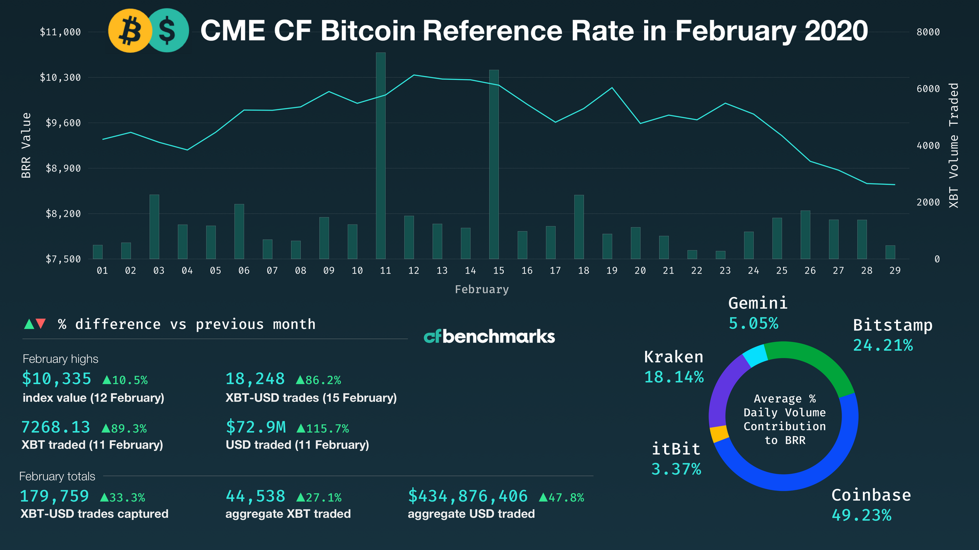 • Feb 11th 2020 saw 7,268 BTC/ $72.9M traded, the highest daily volumes recorded for the BRR since Nov 21st 2019 - 12,577 $95.3M