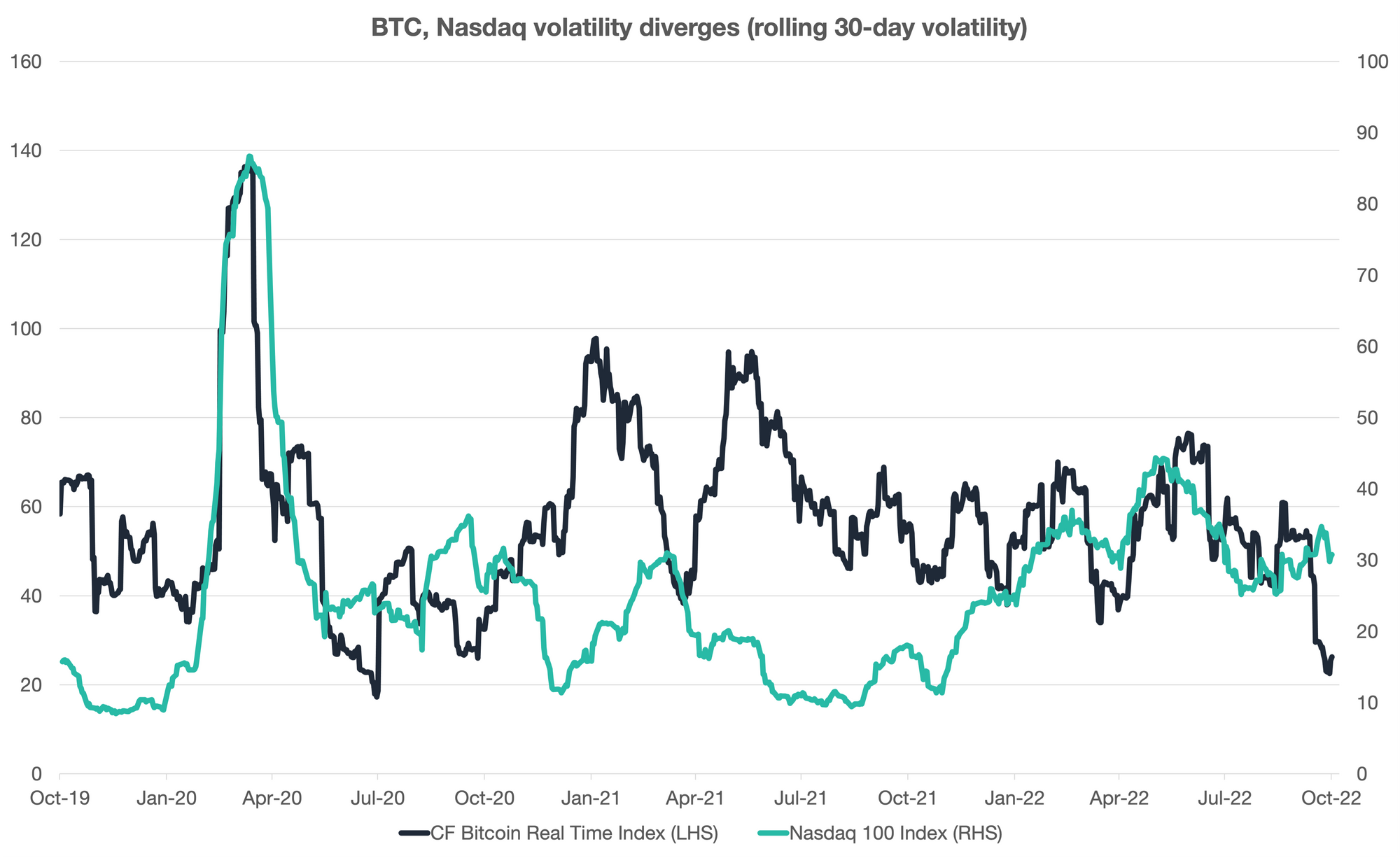 Bitcoin volatility eases while Nasdaq’s ramps