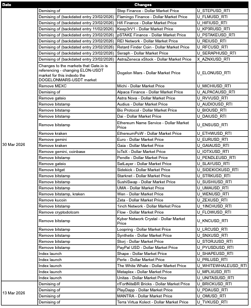 All proposed changes shall be implemented at approximately 11:00 London Time on March 30th, 2026. The process has been overseen by the CF Cryptocurrency Index Family Oversight Function.