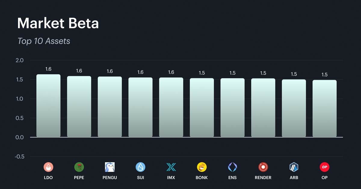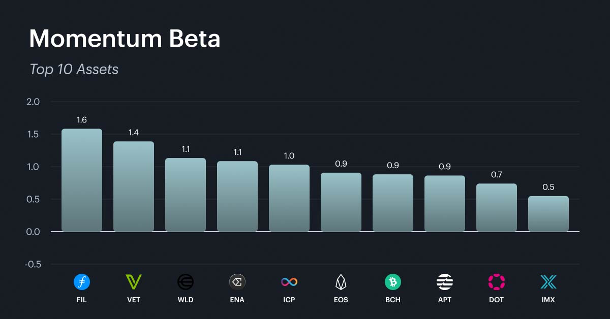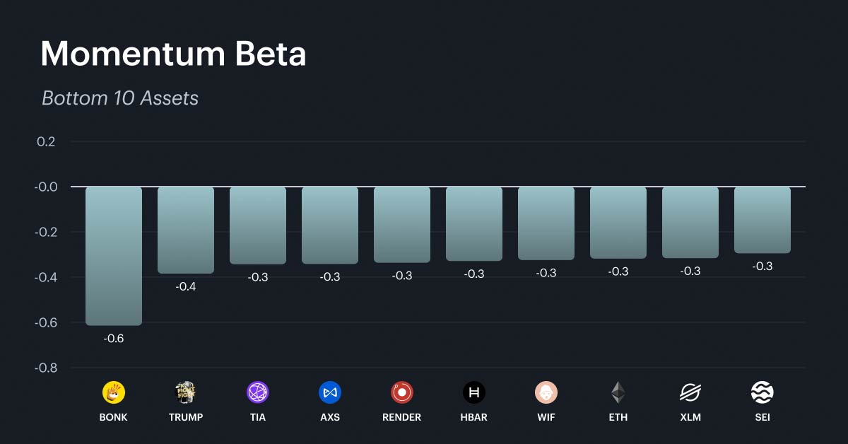 With momentum claiming the top spot in the weekly factor rankings, this factor's beta distribution is the most relevant to examine this week. The momentum factor captures short-term price persistence, identifying assets that have recently exhibited strong performance on both an absolute and risk-adjusted basis. The top assets by momentum beta are dominated by mid-cap infrastructure protocols, established layer-1 platforms, and select DeFi tokens. The bottom 10 tells an equally important story. Meme coins, speculative DeFi names, and some established large-caps populate this list, meaning they face headwinds in a momentum-driven environment. For investors, the momentum factor's recent dominance suggests that chasing recent winners may work in the near term. It is important to remember that momentum tends to reverse sharply when market direction changes. Sizing positions conservatively and maintaining strict risk limits is critical when relying on momentum as a factor tilt.