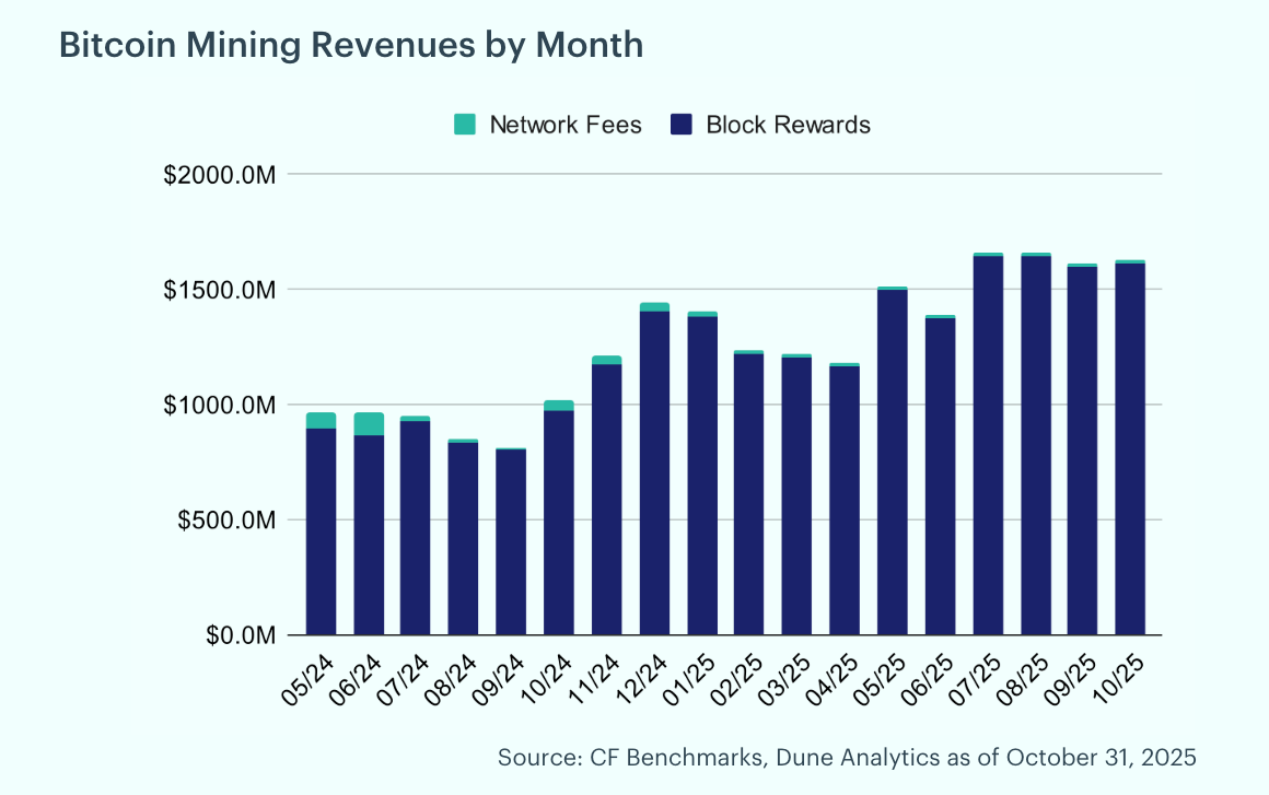 Miner Economics Stable: Bitcoin’s hash rate grew significantly in September, rising 9.7% to 1050 exahashes per second. Mining difficulty, which measures the computational effort required to mine a new block and adjusts to maintain consistent block creation times, increased by 5.1% after a period of faster block times in late September. The next difficulty adjustment, expected in the mid October, is currently projected to be a 0.8% increase.