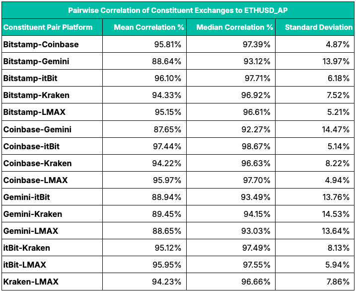 Replicable: The ETHUSD_AP methodology promotes replicability, allowing users, including Authorized Participants of ETFs, to replicate the benchmark simply, and without undue risk. That in turn furnishes APs with the confidence required to provide secondary market liquidity to ETF shares.