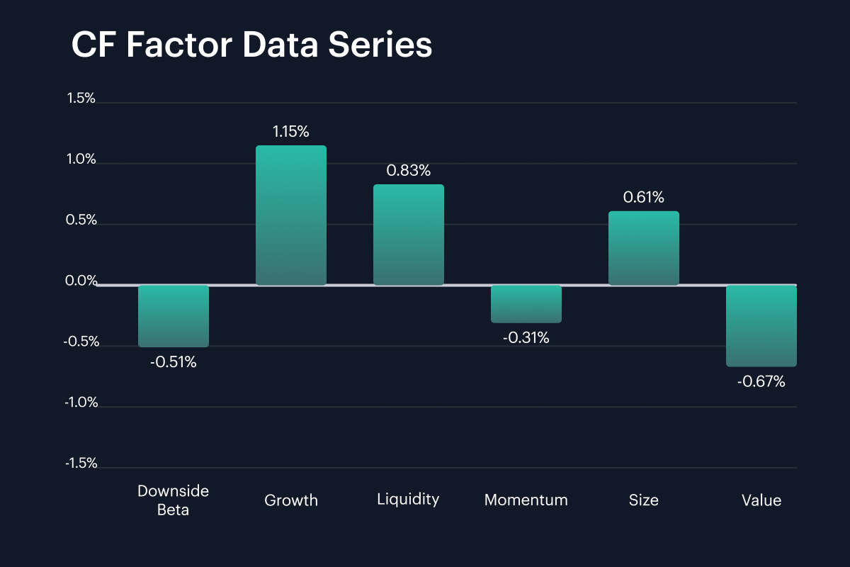 Factor returns improved against the prior week, although the rebound was uneven. Growth moved from -2.07%, in the week ending April 12th, to +1.15% in the week ending April 19th, a swing of 3.22 pp. The negative reading in Downside Beta narrowed from -1.83% to -0.51%, and Liquidity swung positive, moving from -0.49% to 0.83%, while Momentum also improved from -0.92% to -0.31%. Among weakeners, Size eased from 0.89% to 0.61%, and Value ticked from -0.50% to -0.67%. The current cross-factor range therefore ran from -0.67% to 1.15%, against minus 2.07% to plus 0.89% a week earlier. As such, the mix appeared to broadly favor growth and liquidity over the most recent week, with the largest positive swing sitting in Growth at +3.22 pp and the weakest current print still sitting in Value at -0.67%. Three of the six factors finished positive, at 1.15% for Growth, 0.83% for Liquidity and 0.61% for Size, while the other three stayed below zero.